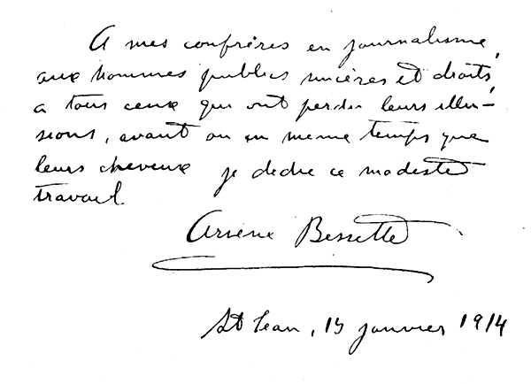 Ce livre, il ne pouvait l'écrire autrement, puisqu'il l'a écrit comme il le pensait. Il a fait ce qu'il croyait bien. Le lecteur le jugera comme il voudra. A. B.