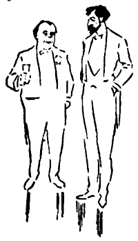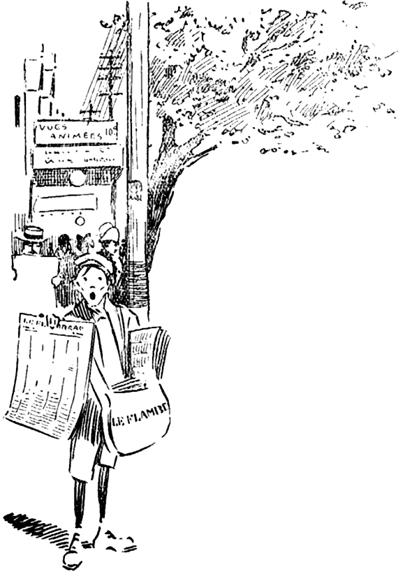 Paul Mirot, un peu pâle, voulut dire un mot à ses amis, en passant, mais Germaine, que l'avait complètement accaparé, l'entraîna vers le buffet où ils se trouvèrent face à face avec Blaise Pistache. Le secrétaire de la rédaction au Populiste, fit un assez bon accueil au jeune homme, pour ne pas froisser sa nièce. Il se permit cependant quelques recommandations dont cette enfant gâtée se moqua lorsqu'elle se perdit de nouveau dans la vaste salle après avoir grignoté quelque chose, au bras de Paul qu'elle emmenait à la recherche d'un coin discret de salon. Le gros homme, en les regardant s'éloigner, se soulagea d'un mot familier:
