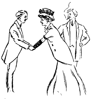 La libre américaine, que cette histoire avait beaucoup amusée, apercevant le jeune homme dans la foule des habits noirs, s'exclama: